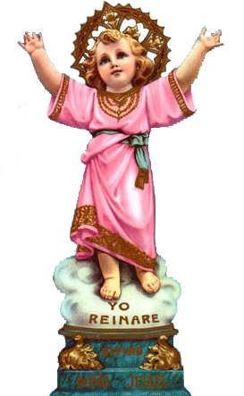 Herr Jesus, du hast gesagt: "Alles, worum ihr mich bitten wollt, erbittet es durch die Verdienste meiner Kindheit, denn alles wird jenen gewährt werden, die mich so anrufen." Durch die Verdienste und die Tugenden deiner Kindheit komme ich, dich anzurufen und dich mit Glauben zu bitten, Göttliches Kind Jesus, König der Liebe, für alle deine Kinder. Ich liebe dich sehr, du weißt es, doch ich möchte dich gerne noch mehr lieben, bis ich daran sterbe. Komme zu mir, Kind Jesus, komme in mein Herz, erlaube mir, dich anzubeten. Süßer Hirte meiner Seele, mit dir fehlt es mir an nichts, denn du führst mich zu ruhigen Quellen, wo ich wieder zu Kräften komme. Bediene dich meiner Kräfte, die du ohne Unterlaß wiederherstellst. Bediene dich meiner Kräfte, damit die unaufhörlich regierst. Im Göttlichen Willen, vertreibe weit von allen deinen Kindern die Versuchungen, denn meine Weigerungen vor den Versuchungen werden ihre Weigerungen sein, du bist es, der das tun wird. Wir flehen dich an, kleines Jesuskind, mache alles für uns. Während deiner ganzen Kindheit hast du in deinem Herzen die Liebe deines Vaters im Himmel und deiner lieben Mama Maria bewahrt. Du hast niemals vergessen, für Josef zu beten, deinen Nährvater, und deine zukünftige Kirche. Immer führst du uns auf dem geraden Weg, und wenn wir auf dunklen Pfaden gehen, bist du uns nahe; durch deinen Hirtenstab sind wir beschützt, und stets begleiten deine Güte und deine Barmherzigkeit unser Leben. Süßes Jesuskind, liebes Kind unserer Seele, wir gehören dir ganz, unsere Seele ist dein. Da du uns am Kreuz um den Preis deines Blutes erkauft hast, erkennen wir dich als unseren einzigen Retter, unseren Erlöser, unseren Freund, unseren Bruder, unseren König und unseren Schöpfer. Heile unsere verletzte Liebe und eines Tages werden wir sie dir unberührt von aller Unvollkommenheit zeigen. Gib uns deinen heiligen Segen, im Namen des Vaters, des Sohnes und des Heiligen Geistes. Amen.